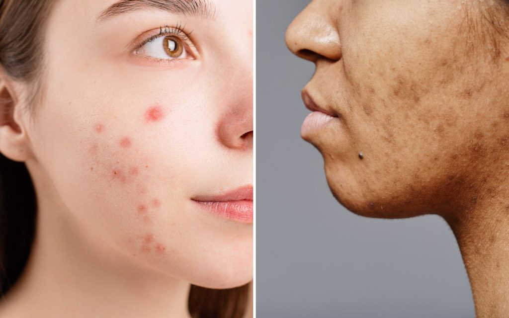 El acné es una inflamación de la unidad pilosebácea producida por retención de sebo (grasa) producido en exceso por influencia hormonal. Hay un retardo en el recambio de células muertas de la piel que ocasiona obstrucción de los poros y esta grasa retenida es colonizada por la bacteria Propinebacterium Acnés que produce inflamación local con aparición de pápulas, pústulas y abscesos que dejan cicatrices.